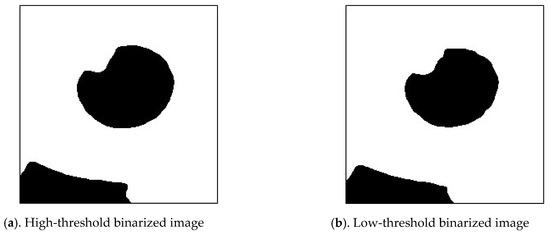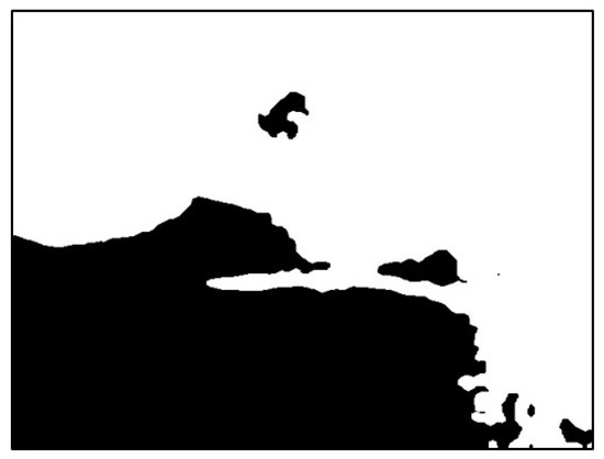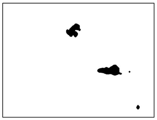 The image was extracted from the background value of the dark group as the threshold value binarization image, as depicted in Figure 18. To maximize the removal of dark values from the edges of the image, morphological erosion calculations were used. This was achieved by reducing white patches in binarization images, as illustrated in Figure 19.