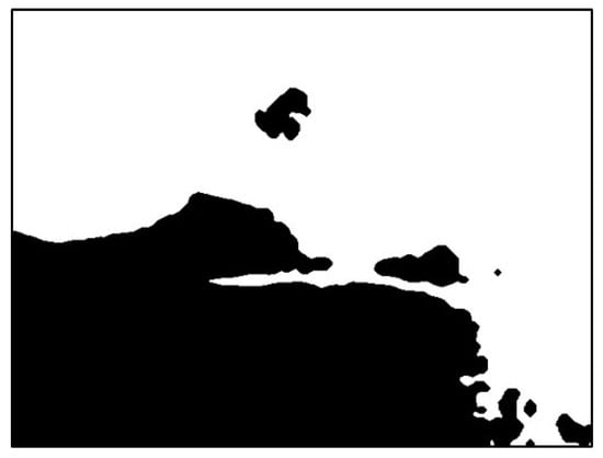 Next, the flood fill method was used to fill white pixels from the bottom row of black pixels in the image. Subsequently, this image was subtracted before filling to obtain the background mask (Figure 20 and Figure 21).