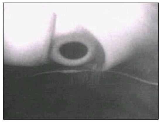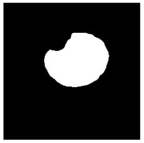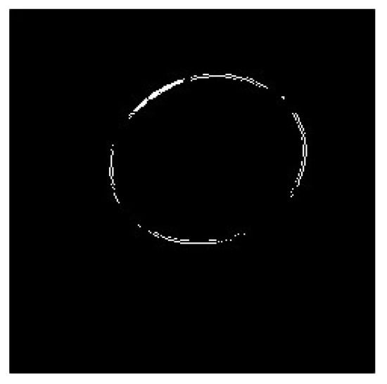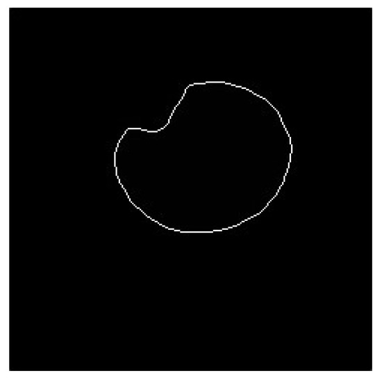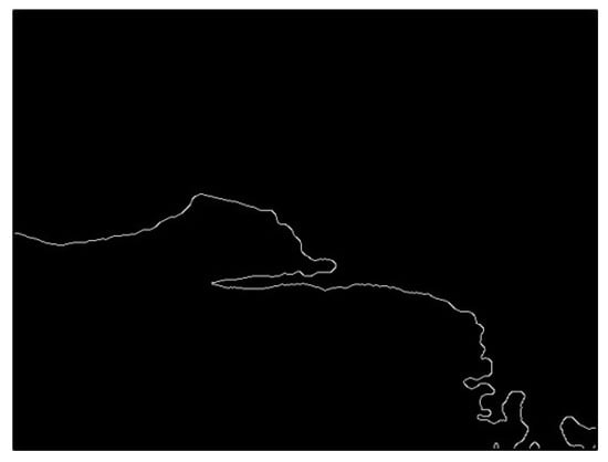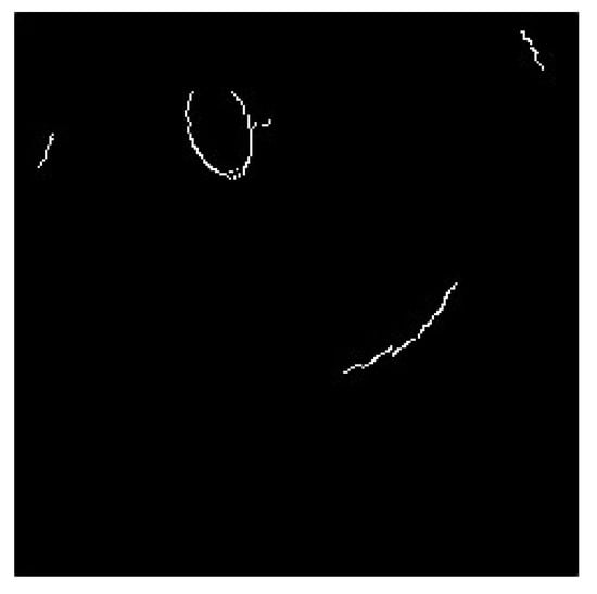 Finally, mathematical operations were used to reduce the small noise in the image to ensure the contours in the captured image were as continuous as possible without fragmentation in subsequent analysis. Equation (4) and Equation (5) describe morphological erosion and dilation, respectively. Equation (4) describes the erosion operation, where denotes grayscale images, denotes structural elements, and denote coordinates, and and denote variables within the structural elements. Equation (5) describes the dilation operation, where denotes the corresponding structural elements. The processed image is depicted in Figure 16.