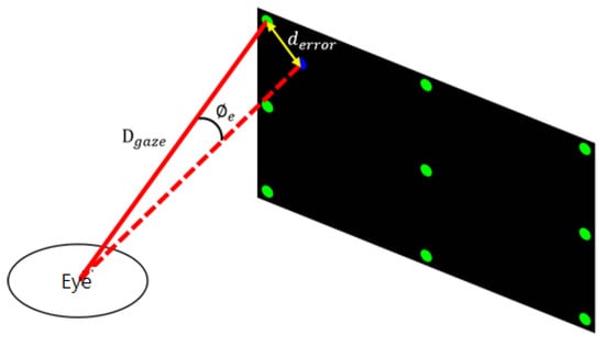 As depicted in Figure 50, is the distance between the ideal gaze point and the actual gaze point and is the distance between the subject and the ideal gaze point. The error angle can be obtained as follows:
