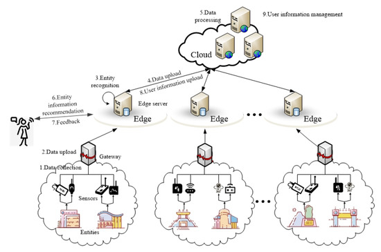 The architecture proposed in this paper is as shown in Figure 1. The IoT recommendation system is divided into three layers. The first layer is the smart entity layer. The sensors attached to the entity collect and upload the state information of the entity. The second layer is the edge layer, which is composed of edge servers. The edge server uses the entity identification method mentioned below to classify entities based on the collected entity state information. The third layer is the cloud layer. The cloud server integrates user information and manages all of edge servers.