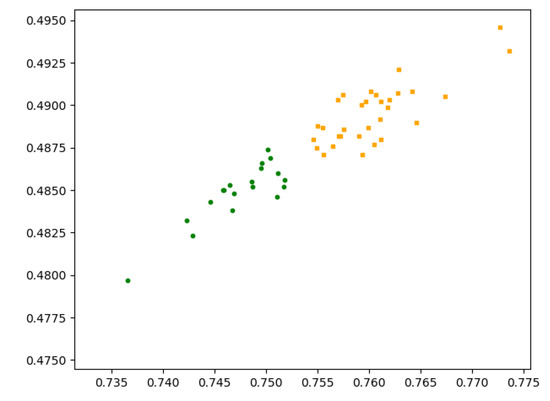Figure 5 is the classification result of the entity recognition algorithm based on deep belief networks. It can be seen that after the algorithm extracts the entity features, the entities are divided into two different types of entities, namely hot entities and cold entities. Figure 6 shows the running time of the entity recognition algorithm based on deep belief networks in different numbers of entities. It can be seen that as the number of entities increases, the runtime of the algorithm also increases. This is because the increase in the number of entities leads to an increase in computing cost, which results in longer calculation times.