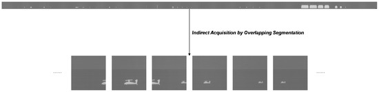 The existing data are complete circumferential images, so sub-frame images are obtained by indirect acquisition. To be specific, we divide a circumferential image into several image blocks. Figure 3 shows the acquisition of subframe images. In the case of direct segmentation, some targets can be segmented into different blocks, causing problems in recognition. In order to solve this, there is an overlapping area between contiguous blocks during segmentation, such that one target is complete in at least one block. The size of the overlapping area is selected according to the maximum size of the target.