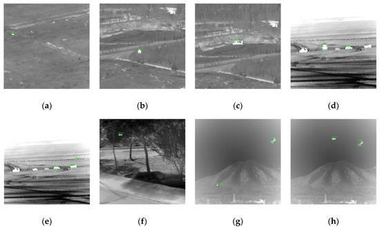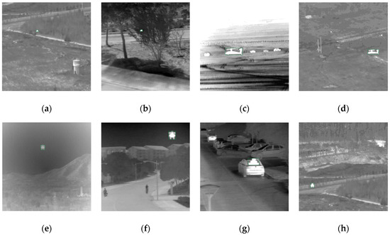 As a type of data-driven algorithms, the DCNN needs a large amount of training data to ensure generalization performance, so that it can cope with the changes of the target itself and the scene. In the field of object recognition, training data refer to the images that contain targets and the annotations that describe the location and category of each target. It is usually expected to collect the data of different states of the targets in as many scenes as possible. However, the commonly used target recognition datasets are composed of visible (RGB) images, such as ImageNet, COCO, and VOC. In the infrared field, most of the datasets are used for target tracking, such as the VOT-TIR challenge [26,48], which consists of small sequences of infrared images containing targets. In these sequences, the target is of a single type, like pedestrians or vehicles, and the size and brightness of the target is almost unchanged, while the scene is also almost unchanged. If the training set and test set are determined by dividing a sequence randomly, the diversity between them can be too limited to guarantee the generalization of the network, although the performance on the test dataset can be noteworthy. Meanwhile, as shown in Figure 3, the background of the target in the existing data is too simple; if training is based only on this, the adaptability to the scene of the algorithm will be weak. In order to ensure that targets can be detected in infrared images of different scenes, we built an infrared target recognition dataset, including aspect orientation, size, contrast, and scene changes.