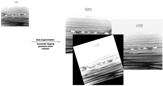 The data augmentation for each image, including horizontal flipping, Gaussian noise, rotation.