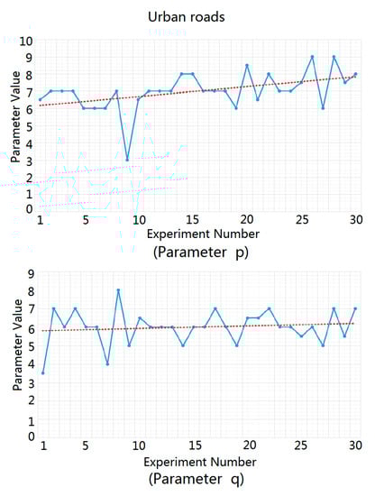 Solution process of parameters and for urban roads.