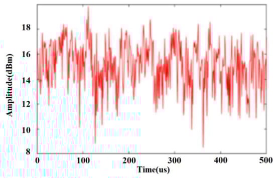 For example, in the traffic scene of a city road, let . When two stationary parked vehicles are added to the simulation, the time domain signal of the complex Weibull clutter generated by the above modeling method is the result shown in Figure 12.