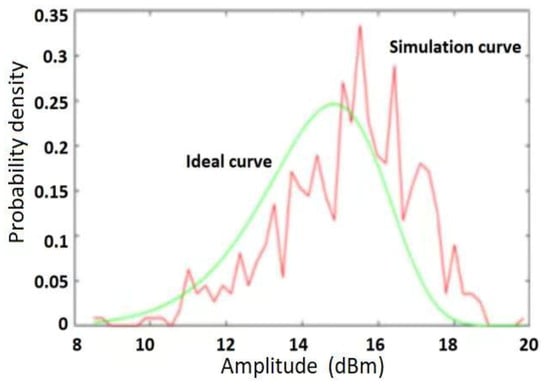 The comparison between the complex Weibull clutter generated by the ground clutter modeling method and the ideal Weibull curve is shown in Figure 13. It can be seen from this figure that the curve fitting effect of the model is better, and the injection effect of the strong scattering target of the two vehicles is also significant.