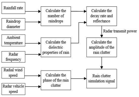 Considering the rainfall attenuation rate, reflectivity, amplitude, and phase distribution of factors such as rain clutter and radar transmission power, the rain clutter modeling method was designed, as shown in Figure 14.