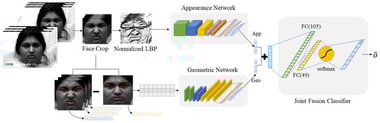 The proposed scheme needs the neutral frame to be used for the reference image in the geometric feature-based network. In real situations and applications, it can be very difficult to give a neutral frame for providing the natural emotion in prior. To solve this situation, the proposed scheme needs to capture video segment (neutral frames) with user’s neutral expression for 1–2 s, in real application. In addition, we focused on the proposed deep joint spatiotemporal network (DJSTN) to improve the recognition accuracy, not on implementation efficiency. If we are interested in the computational efficiency, the 2D convolution should be carried out via the fast Fourier transform (FFT) operation [,].