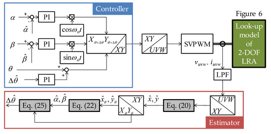Overall control and estimation block diagram of the proposed 2-DOF LRA.