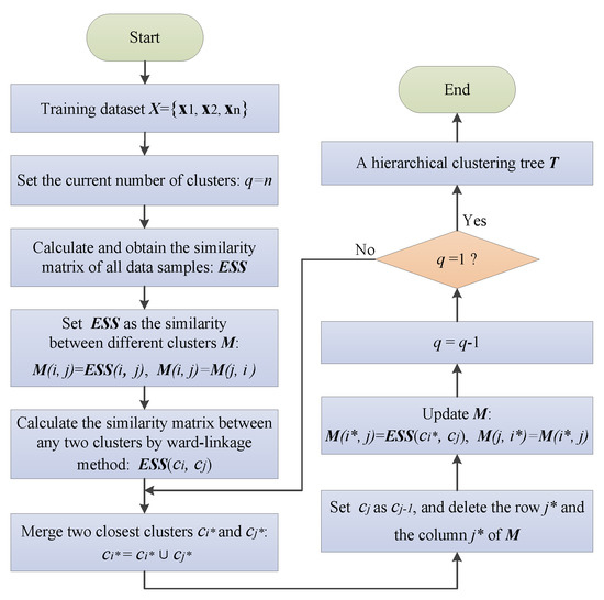 Another crucial task is the combination of different clusters. In this study, ward-linkage method, which aims to minimize the total variance of the clusters being merged, is employed to cluster combination [31,32]. The pair of data clusters that lead to the minimum increase in total produced variance, or the error sum of squares (ESS), are selected to merge at each union step to implement this method.