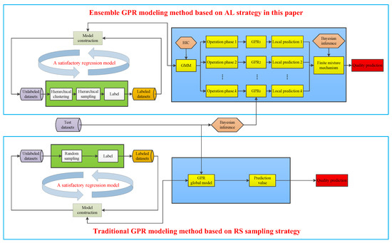 Therefore, the motivation of this paper is to design a superior smart soft sensor, which can be referred as ensemble GPR model with hierarchical sampling based AL strategy (AL-EGPR), expecting to positively support the real-time data processing and process control in 4.0 industrial environments. The limitation of traditional supervised learning based regression methods raises nontrivial concerns regarding the efficient utilization of large amounts of unlabeled data. Subsequently, a novel AL strategy is proposed and incorporated into soft sensor modelling method. With the hierarchical sampling strategy, if the new unlabeled sample does not fall into any existing high-density clusters, it is considered to be highly informative and representative. In such cases, a desired number of most dissimilar unlabeled samples can be selected and used for manual annotation in each learning iteration, and, after that, added into the training dataset for the next model construction, until achieving the satisfactory accuracy, or all unlabeled samples have been labeled. Ensemble learning based on GPR model is further introduced to robust soft sensor design, aiming to achieve better generalization than single model-based predictors. Here, we choose the GPR model as the ensemble member as its characteristic probabilistic structure as well as the strong ability to handle abrupt changes and nonlinearity of industrial processes. In this method, the newly updated labeled training dataset is firstly divided into several different local data domains that can be realized by applying the GMM method, and multiple local GPR sub-models can be built for these sub-datasets, respectively. Afterwards, we introduce the Bayesian inference strategy to estimate the posterior probability of each query data sample with respect to local sub-models. Afterwards, the local predictions of GPR sub-models are effectively integrated into final prediction results by applying the finite mixture mechanism. Besides, the Bayesian information criterion (BIC) [18,20] is applied to determine the optimal number of GMM components in attempting to reduce the soft model complexity and enhance estimation ability. The recommended soft sensor has been applied to the prediction of penicillin concentration in the penicillin fermentation process, demonstrating that the high performance can be achieved at a low cost, in terms of the estimation accuracy and converge speed.