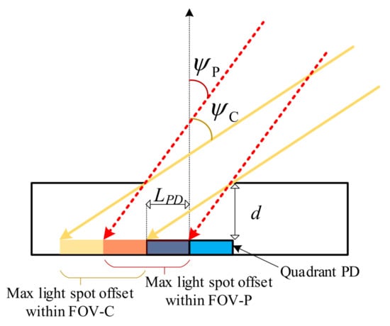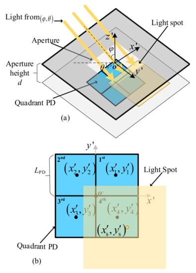 is the polar angle. Based on the direction of the light source, the light spot may overlap with the quadrant PD beneath it.