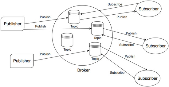 MQTT is based on a publish–subscribe model and a client–server paradigm. The clients can be of two types: publishers (producers of the messages) and subscriber (consumers of the messages). They do not communicate directly between them, but through a server called broker. In detail, the broker runs different topics and receives the subscriptions on these topics from subscribers. When a publisher sends a message, it specifies the topic associated with the message and the broker forwards this message to the interested subscribers (i.e., those registered to the topic). The communication between clients (publishers or subscribers) and the broker takes place as part of a session. A session can be persistent or non-persistent. In a non-persistent session, if the connection is interrupted, all the subscriptions of the client to the various topics are not kept and the messages associated with such topics are lost. Moreover, when the client turns on and connects again with the broker, it has to re-subscribe to the topics, thus it cannot be efficient, especially when the clients are constrained devices with limited resources. Therefore, in these cases, a client can require a persistent session in which the broker stores (among other things) the subscriptions to topics and the messages for the client (even if the connection is interrupted and the client goes offline). When the client reconnects, all the undelivered messages associated with the topics it has subscribed to are forwarded by the broker. Non-persistent sessions are used when clients play, mainly, the role of publishers. The architecture of MQTT is depicted in Figure 1.