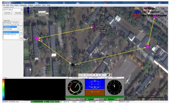 The use of GNSS in the autopilot system was carried out in a loosely connected configuration (loosely coupled INS/GPS) [17]. The WABIK flight control was made available to the operator through the Horizon software, as shown in Figure 4.