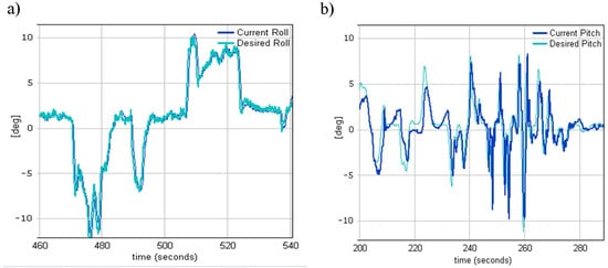 (a) Current and desired roll angle. (b) Current and desired pitch angle.