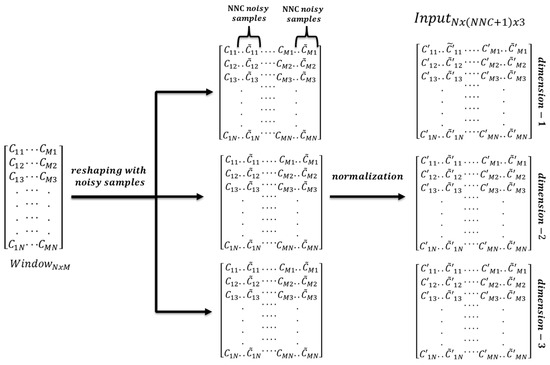 The noisy copies of each channel are created by adding random samples of a gaussian distribution of mean μ and variance σ2 where μ and σ are chosen as 0 and 0.01, respectively. This process is given in Equation (2) where is the noisy copy of the original data and is the noise vector.