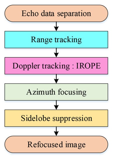 To estimate the phase error and refocus the images, many fine phase compensation algorithms have been proposed, which are roughly divided into parametric and nonparametric algorithms. The parametric algorithms include the Mapdrift (MD) method [,], the phase difference (PD) method [] and methods of parameter estimation []. MD and PD methods are easy to implement, but they only compensate for QPEs, which limits their applications. Furthermore, Chen et al. [] proposed a parametric sparse representation method. The acceleration and third-order phase were considered in [,]. Tang et al. [] achieved 2D velocity estimation of moving targets and refocusing based on back projection and velocity SAR (another multichannel SAR-GMTI technique). Nevertheless, these methods introduce nonlinear operations, which degrade the performance in the case of low SNR. [,,,] presented a method for imaging moving targets via the compressive sensing (CS) method, which is capable of generating images with better target focusing, especially with low SNR and high undersampling ratios.