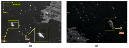 Moreover, many studies have been taken on this topic [,,,,]. Nevertheless, these methods are based on low-resolution, short-CPI simulation or airborne SAR data, and their application to high-resolution, long-CPI spaceborne SAR images requires further verification. However, the proposed method processes high-resolution spaceborne SAR images, which is verified with GF-3 satellite data. Next, our results suggest a possibility of applying to the spaceborne SAR system with a long CPI (8.58 s). Furthermore, our work demonstrates great potency of the application of the high-resolution (1 m) SAR images.