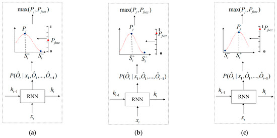 In Equations (7)–(9), and are the maximum probability and the minimum probability of the probability matrix, respectively; is the RNN model; is the probability distribution matrix of the output ; and is the random variable threshold.