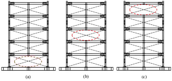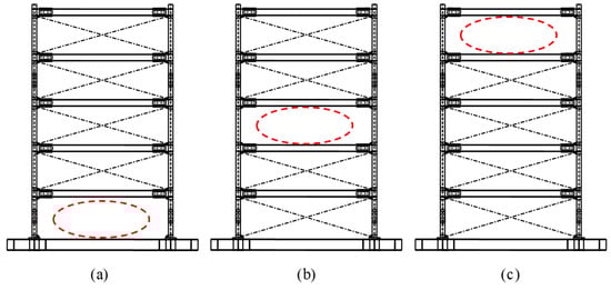 Structural damage detection, an essential component of structural health monitoring (SHM), serves as a necessary measure for aging infrastructures during their long-term service to assess operating conditions and provide suggestions for potential repair and maintenance actions []. Over the past decades, various non-destructive testing (NDT) techniques have been developed for damage detection in structures such as magnetic particle testing, X-ray testing, ultrasonic testing, and so on []. In recent studies, NDT technologies have been widely used and proven quite effective in inspection of damage in composite structures. The latest research on these technologies includes eddy current testing of manufacturing flaws and operational damage [,,], microwave nondestructive evaluation of galvanic corrosion and impact damage [,,], and guided wave detection for various composite damage types [,,]. All of these localized experimental methods can locate and identify the damage when the nearby region of the damage is known a priori. Besides, easy accessibility to the portion of the structure being scrutinized has always been a prerequisite. Bound by these restrictions, such NDT methods are primarily used for damage severity checks on or close to the surface of the structure. However, without stripping the architectural cladding at a high cost, it is difficult to evaluate the health condition of the inner components of the structure by using most standard NDT procedures. Thus, it is always expensive and difficult to use these local NDT methods to identify the damage for complex and large-scale structures without a priori knowledge of the possible damage sites. Generally, for complex and massive structures, some hybrid ways will most likely be employed by combining these local inspection methods with the quantitative global damage identification methods.