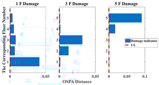 where the number n is determined by the experience of engineers, is the Euclidean distance between and , and the authors would suggest it to be more than 8 normally to cover the uncertainty of measurements. Thus, the UL is determined by the mean value of the pole-based OSPA distances between multiple AR models of undamaged systems.