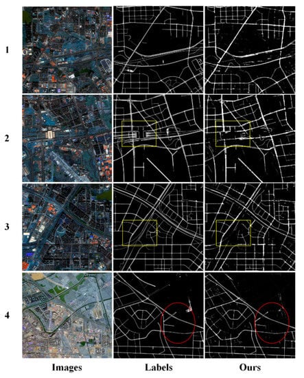 - Cheng, G.; Zhu, F.; Xiang, S.; Pan, C. Road centerline extraction via semisupervised segmentation and multidirection nonmaximum suppression. IEEE Geosci. Remote Sens. Lett. 2016, 13, 545–549. [Google Scholar] [CrossRef]