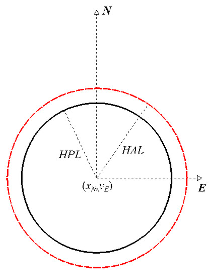 A “circular” assessment of the user positioning integrity is derived as the HPL: