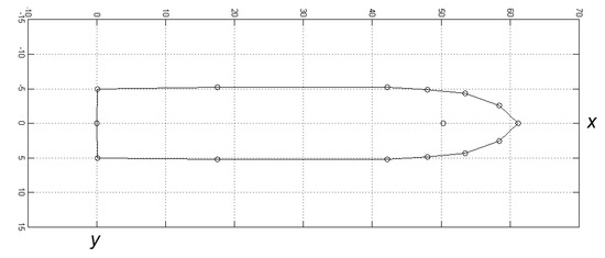 Because boundary lines are represented in the electronic navigation chart data as an array of points Pk(xk, yk), the coordinates of the rectangular projection point PBk(xBk, yBk) are found as a result of solving the system of equations: