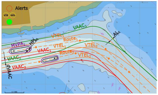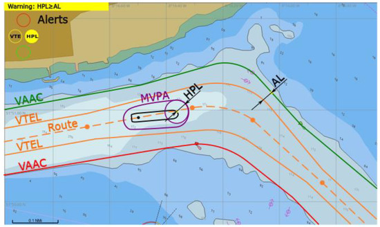 Alarm of both VTE and HPL raised, conceptual presentation in ECDIS.