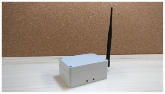 The LoRa modulation physical layer (Semtech Camarillo, CA, USA) allows a wide range at low power. We used the RN2483 transceiver module for Lora Class A, which operates in the industrial, scientific, and medical (ISM) frequency band of 868 MHz. The payload of each transmission can vary from 2 to 255 octets and the data rate can reach 50 Kbps [].