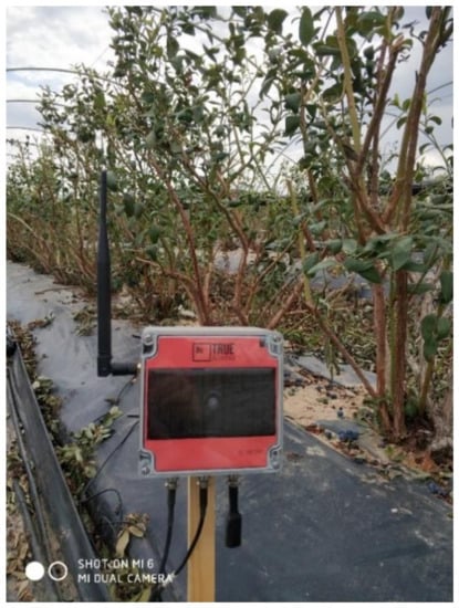 The time between measurements must be programmed to extend the battery life, but also, in turn, to have sufficient precision to quickly detect changes in soil moisture or weather conditions, and it is not necessary to monitor the parameters in real-time []. In our experience, for the cultivation of berries in hydroponics, taking measurements every 30 min is sufficient. In irrigated systems with trees, they tend to be taken with less frequency, as well as in outdoor irrigated crops too. Thus, we used the most extreme case.