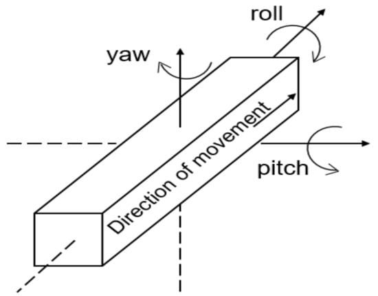 Let the 3D attitude angles of an object be the roll angle φ, pitch angle θ, and yaw angle ψ, which are the three angles of a carrier on a local horizontal coordinate system (Figure 1) [26].