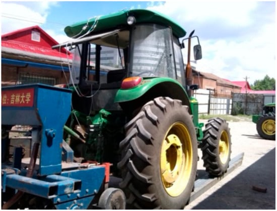 In order to test the accuracy of the INS measurement system, experiments were carried out at Jilin University during the operations of plowing and sowing in spring. During the test, the INS is fixed on the top of the tractor, and the tractor battery provided power to the equipment. The monitoring terminal is used to receive and record the output data of the INS in the cab.