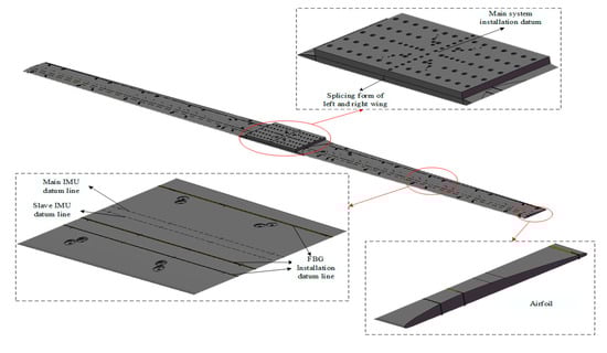 FBG sensors are used to directly sense the strain changed at the mounting points. Its layout would directly affect the accuracy of deformation measurement of the simulated wing structure. FBG sensors should be installed as far as possible to enhance the signal-to-noise ratio of the signal. At the same time, the installation of the sensor could not affect the load and IMU installation.