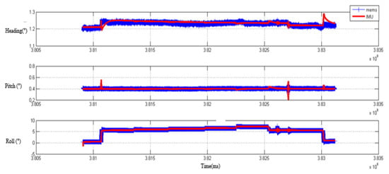 The attitude comparison from transfer alignment of MEMS and fiber IMU.