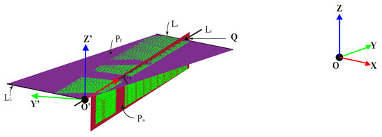 Accordingly, the real spatial position of the new basis (x′,y′,z′) can be used to determine the coordinate transformation, followed by setting the x′-axis of the local structural coordinates on the extracted intersection line of the planes, as shown in Figure 5.