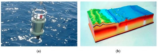 Nowadays, there are two ways to obtain marine environmental parameters. One is direct measurement, including on-site measurement and post-sampling analysis. The other method is acoustic inversion. Figure 1a,b show the on-site measurement and geoacoustic parameters inversion respectively. Compared with direct measurement, the acoustic inversion method can obtain the acoustic parameters quickly and efficiently, and avoid the waste of manpower and material resources.