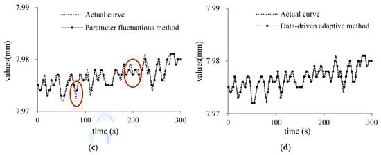 In Figure 7, Figure 8 and Figure 9a is the traditional sampling curve with constant sampling frequency (T = 4 s); (b) is the adaptive sampling curve with spectrum-based method; (c) is the adaptive sampling curve with parameter fluctuations adaptive method; (d) is the sampling curve using the adaptive sampling method proposed in this paper. The location of the loss of sampling information caused by the traditional constant sampling frequency is shown with red circle in the figure. According to the sampling curve, we can find that the sampling curves obtained by the adaptive sampling method proposed in this paper can better restore the actual change curve of the sampling object and the sampling curve is closer to the actual change of the sampling object. The change trend of the sampling object at the sensitive moment can be observed more clearly by adjusting the sampling frequency adaptively at the edge node.
