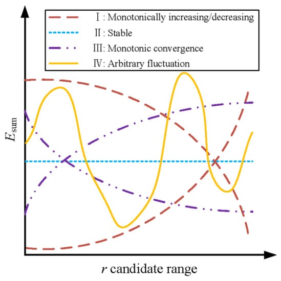 Figure 9 depicted the possibly typical variation of at different . For cases Ⅰ and Ⅳ, it was easy to determine the appropriate based on the minimum . For case Ⅱ, it can be considered that the constraint bandwidth did not affect the distance measured by the SDTW algorithm, and the first corresponding to the minimum can be seen as the candidate. For the situation in case Ⅲ that multiple candidate values within the convergence region corresponded to the same minimum value , the median of these candidate values was selected as . Here, the general rules for determining and adjusting the preset range for can refer to [].