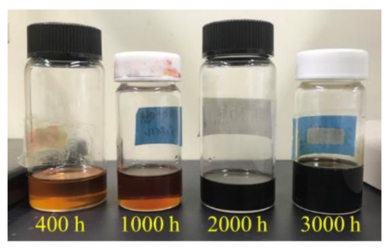 Photos of the heated engine oils. The lids of the vessels were open during the heating.