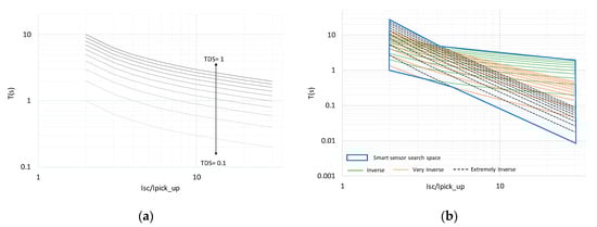 The advantage of optimizing three variables instead of two [45,46] is that the operating area of the smart sensor is expanded in the available search space, as illustrated in Figure 4b; this overcomes the restrictions imposed by the predefined time–current curves in [23]. This aspect has not been addressed before in the scientific literature and is of utmost relevance to improve the reliability of the smart grid.