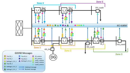 GOOSE messages entail a fast communication channel to share events-related information between multiple smart grid devices mapped by the IEC 61850, mainly those related to the critical information of smart grids. Furthermore, GOOSE messaging allows for the exchange of both digital and analogue data between peer-to-peer devices with an average processing rate of 12 ms. Peer-to-peer communication in the IEC 61850 environment introduces the concept of publisher and subscriber devices regarding the information exchange. When a device publishes a GOOSE message, only subscriber devices receive it and react according to their functionality in the distribution network.