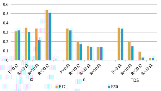 A study to ascertain the impact of the PV penetration level as well as fault impedance on the protection coordination was performed for Scenario E (Table 2), corresponding to a single-phase-to-ground fault in the main feeder (line 6–7). In Scenario E, different fault resistance values of 0 Ω, 10 Ω, 20 Ω, and 30 Ω were considered. Moreover, both DG units presented in the smart grid (Figure 7) were in operation, and two different penetration levels were assessed: 17% (E17) and 50% (E50). Table 7 presents the operation time of the proposed smart-sensor protection coordination compared with the results obtained by classical coordination techniques with ER and linear programing-based techniques with IEDs. In all situations, the proposed APS running in the smart sensors’ MPU provides optimal setting parameters that reduce the tripping time of the smart sensors, as seen in Figure 10. Note that the proposed smart-sensor protection coordination changes the setting of the primary and backup smart sensors for any variation in the DG penetration or fault resistance value.