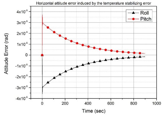 Horizontal attitude error induced by the temperature stabilizing error. Roll and pitch errors decrease exponentially.
