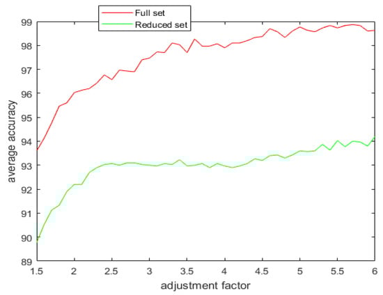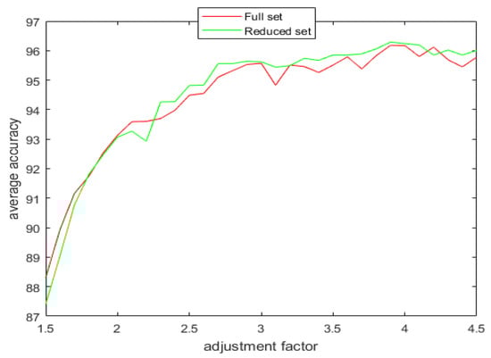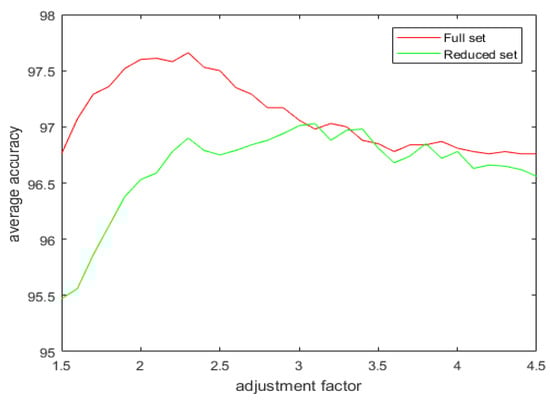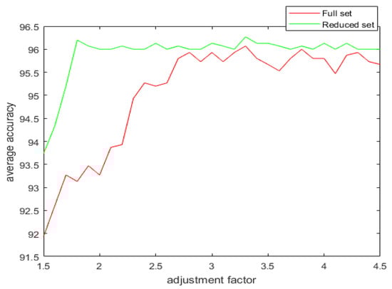 Having discovered that by changing the value of , we can alter the decision accuracy of the DS model. The next question is how to select the value of . The training set is used to determine a suitable value of . With 5-fold cross-validation, we increase from with a step size of to , and their corresponding accuracies on the training set are recorded. The value of that returns the maximum accuracy is selected to build the fuzzy models.