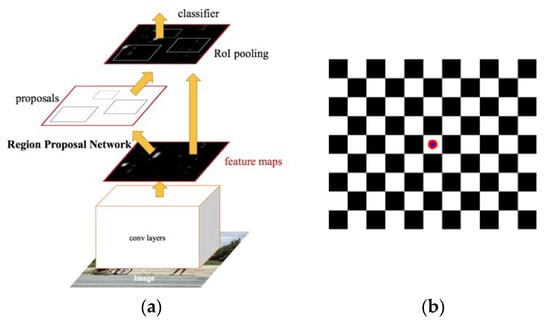 (a) Architecture of Faster Region-based convolutional neural networks (R-CNN) [29], (b) Target with Track-point [30].
