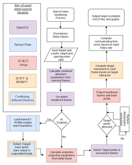 The workflow presented in Figure 7 is automated via a python script. The script implements open source libraries NUMPY [37], SCIPY [38,39], SCIKIT—image libraries [40], and OpenCV [41]; That facilitates matrix operations, computational operations, and application of various digital image processing functions, and allowed the automation of monitoring procedures via a developed program implementing different functions form those libraries.