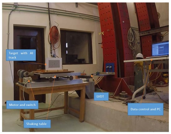 The monitoring station was placed at about 3.5 m from the target, and the monitoring is performed by a video of 1920 × 1080 pixels at 60 fps and has a field of view covering about 50 cm in the X-direction which results in theoretical monitoring accuracy of 0.26 mm. The used LVDT has a nonlinearity factor equals to 0.4% of the LVDT full scale resulting precision of 0.4 mm, and data controller was set to have data acquisition rate of 50 Hz.